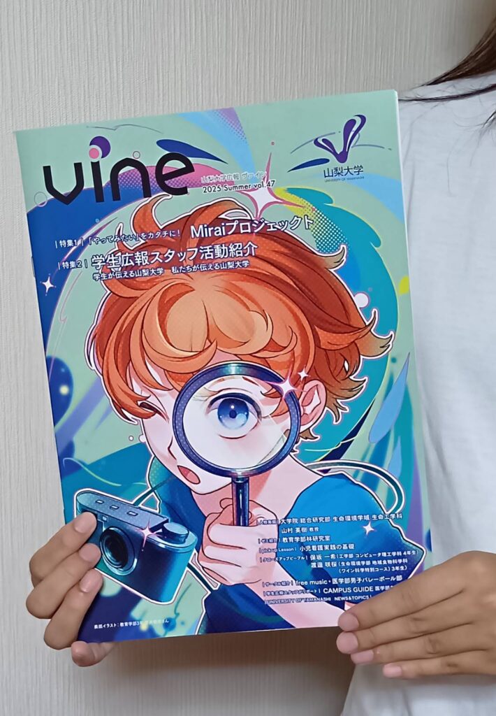 学部3年の笠井さんが山梨大学の広報誌「Vine」の表紙イラストを描きました。